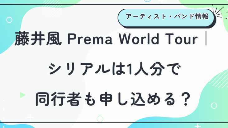 アーティスト・バンド情報藤井風 Prema World Tour|シリアルは1人分で同行者も申し込める?ルールとユーザーの声から徹底解説