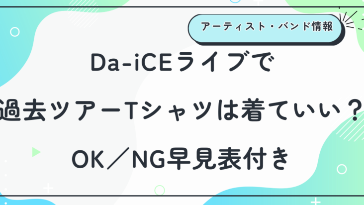 Da-iCEのライブに参加する際、「過去のツアーグッズは持って行っていいの?」「Tシャツやバッグもダメなの?」と不安になる人は少なくありません。結論から言うと、Da-iCEのライブで問題になるのは過去グッズを“掲げる・振る・広げる”といった...