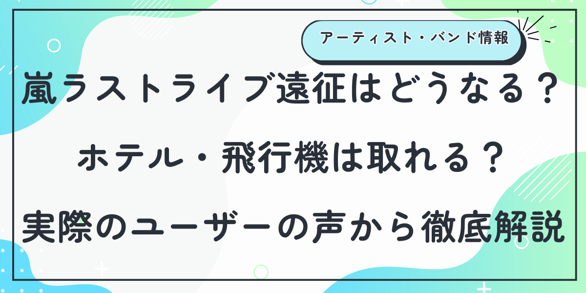 嵐ラストライブは全国的に遠征需要が高く、ホテルが一時的に埋まりやすい状況にあります。