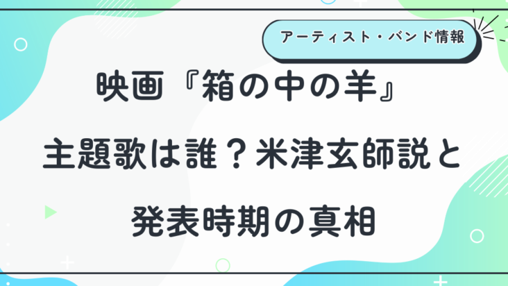 アーティスト・バンド情報映画『箱の中の羊』主題歌は誰?米津玄師説と発表時期の真相 2026年公開予定の映画『箱の中の羊』は、是枝裕和監督が手がける最新作です。主演は綾瀬はるかさんと千鳥・大悟さんで、近未来を舞台に「ヒューマノイドを息子として迎える家族」の物語が描かれます。公開を前に、作品の主題歌についても関心が高まってお... 2025.09.29アーティスト・バンド情報