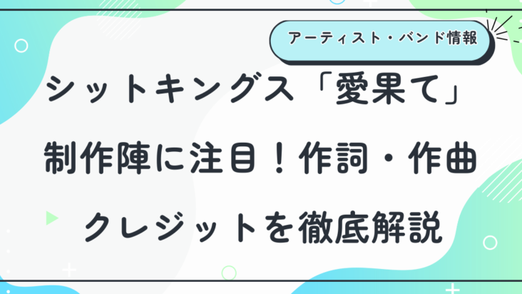 アーティスト・バンド情報シットキングス「愛果て」制作陣に注目!作詞・作曲クレジットを徹底解説 NHK『あさイチ』で初披露されたシットキングス(s**t kingz)の新曲「愛果て」。三浦大知さん、SKY-HIさんとの豪華共作というだけでなく、制作陣の詳細クレジットにもファンの注目が集まっています。「鍵盤あっちゃんことshowmore... 2025.10.03アーティスト・バンド情報