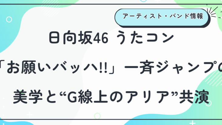 アーティスト・バンド情報日向坂46 うたコン「お願いバッハ!!」が圧巻!一斉ジャンプの美学と“G線上のアリア”共演の秘密 2025年10月放送のNHK『うたコン』で、日向坂46が最新曲「お願いバッハ!!」を披露しました。曲中でバッハの名曲「G線上のアリア」を引用し、弦楽器による荘厳な間奏と、日向坂46の明るいダンスが美しく交わった瞬間でした。SNS上では「ジャ... 2025.10.07アーティスト・バンド情報