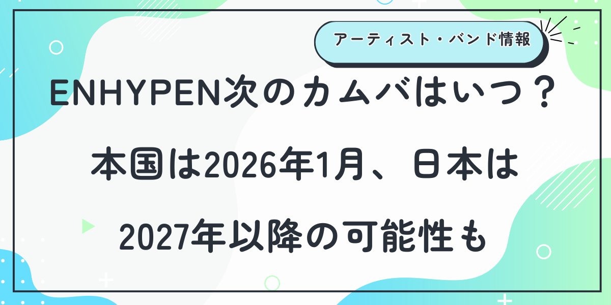 ファンの間では「次の日本カムバは2027年ごろでは?」という意見が主流で、ENHYPENの日本版活動が数年スパンで行われる傾向を踏まえると、その見立ては現実的です。