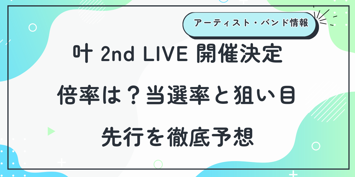叶さんの2nd LIVE は、ファン待望の大型ソロ公演であり、倍率は非常に高くなることが予想されます。
