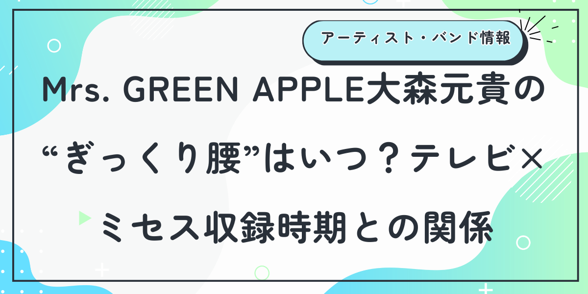 Mrs. GREEN APPLE・大森元貴さんの“ぎっくり腰”は、10月4〜6日頃に発症し、