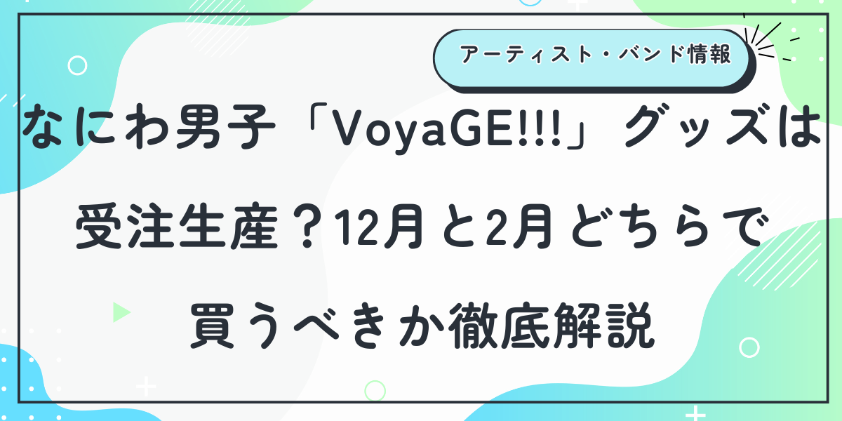 なにわ男子「VoyaGE!!!」のグッズは、12月は在庫販売、2月は受注生産になる可能性が非常に高く、金銭的に迷っている人は2月販売でもまったく問題ありません。