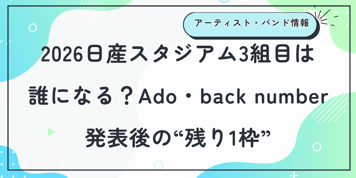 2026日産スタジアム3組目は誰になる?Ado・back number発表後の“残り1枠”を正式ルールから読み解く
