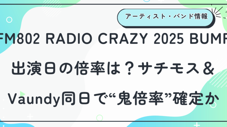 アーティスト・バンド情報FM802 RADIO CRAZY 2025 BUMP出演日の倍率は?サチモス&Vaundy同日で“鬼倍率”確定か
