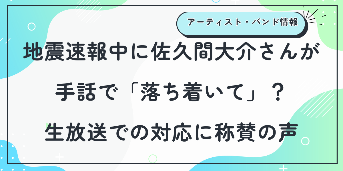 その際、ワイプに映ったSnow Manの佐久間大介さんが、手話で「大丈夫」「落ち着いて」と呼びかけるような動作をしていたとSNSで話題に。
