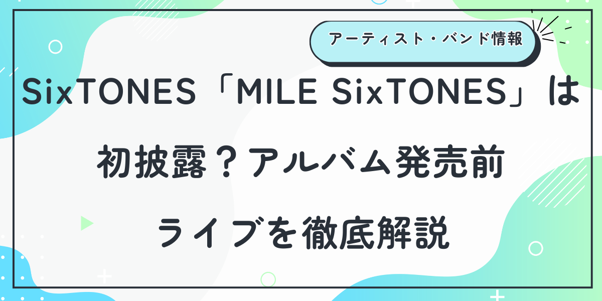 SixTONES「MILE SixTONES」は初披露?アルバム発売前ライブを整理
