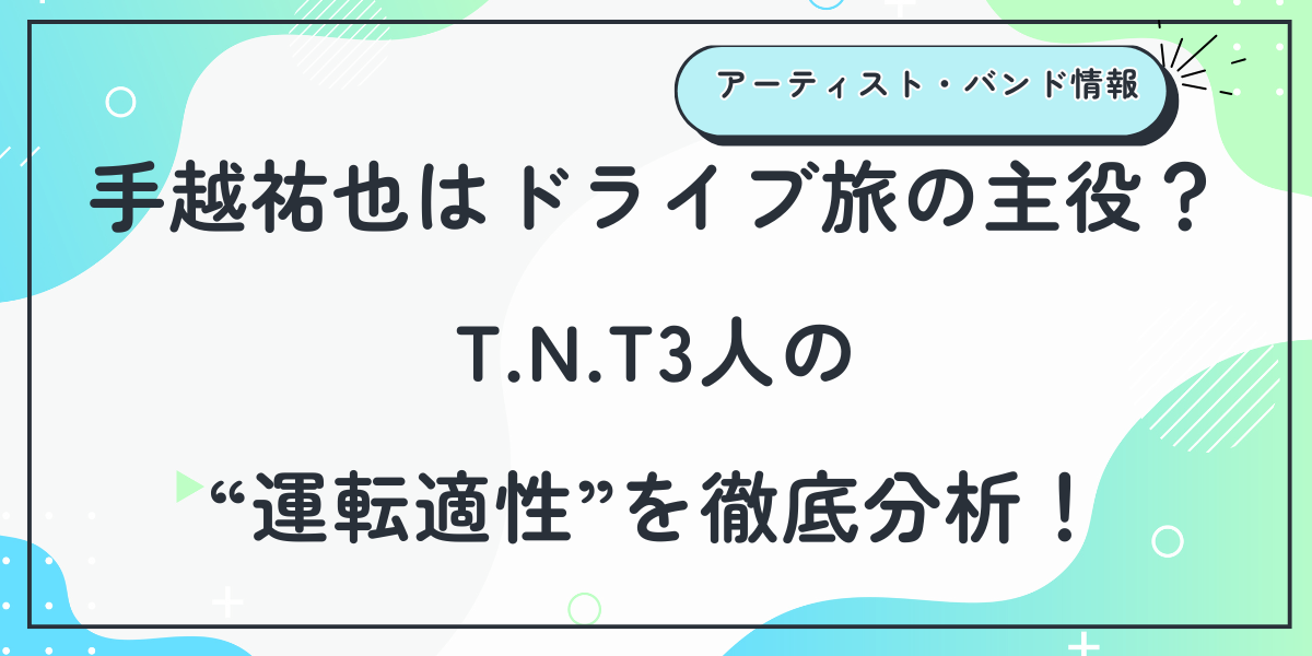 手越祐也はドライブ旅の主役?T.N.T3人の“運転適性”を徹底分析!