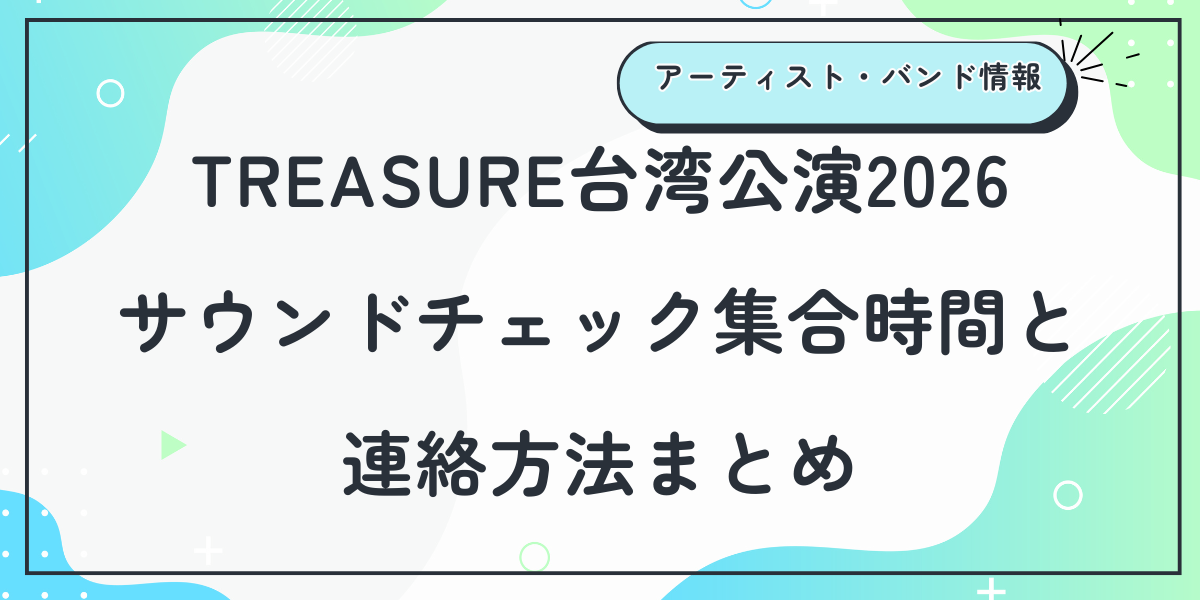 TREASUREの台湾公演サウンドチェックに関する詳細案内は、公演直前(2〜3日前〜前日)にWeverse公式NOTICEおよびTixcraft/Live Nation Taiwan公式ページで発表されます。