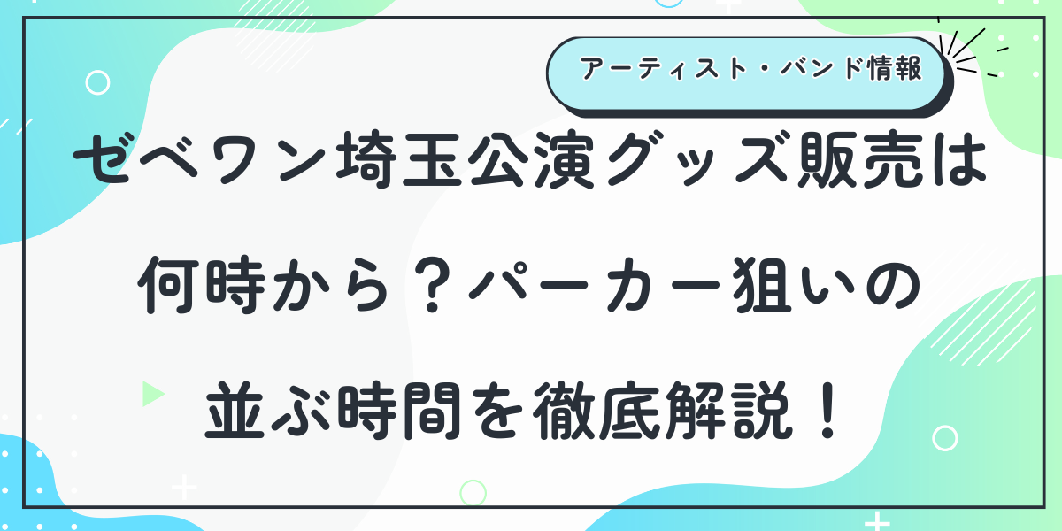 この記事では、さいたまスーパーアリーナで行われるゼベワン公演の物販時間、並ぶおすすめ時間、パーカー購入のコツ、そしてオンライン販売の有無まで徹底解説します。